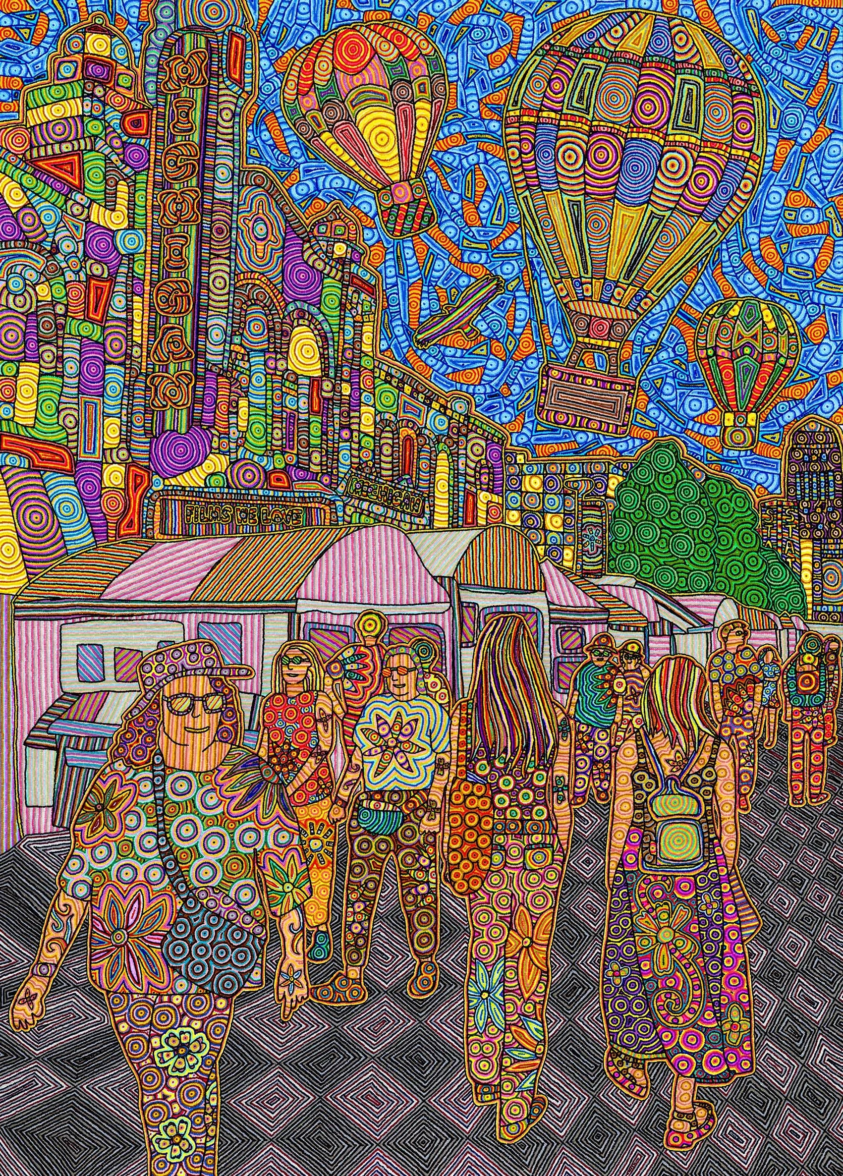 This year’s design is based on Wimmer’s featured artwork “People Watching”. We love his whimsical, colorful style and can’t wait to show you the other merchandise we’ll be selling at the art fair that features this work and others from Chuck.